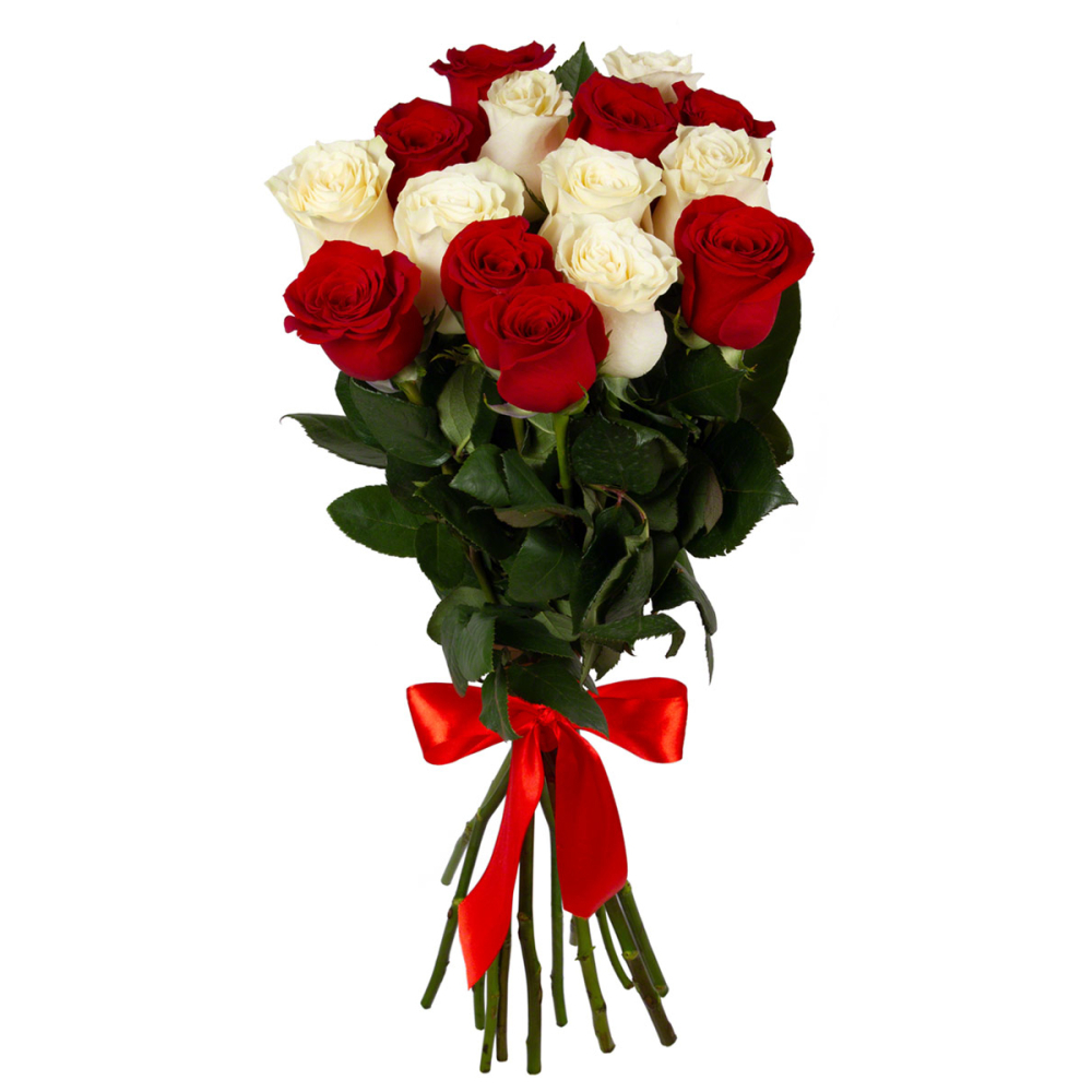 Сочетание красных и белых роз в одном букете создает удивительную гармонию.