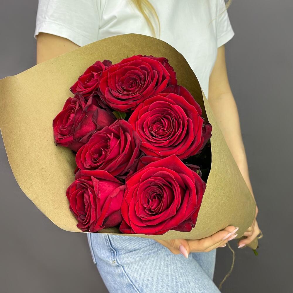 Элегантный букет из 7 красных роз в экологичной крафтовой упаковке — это современное проявление искренних чувств.