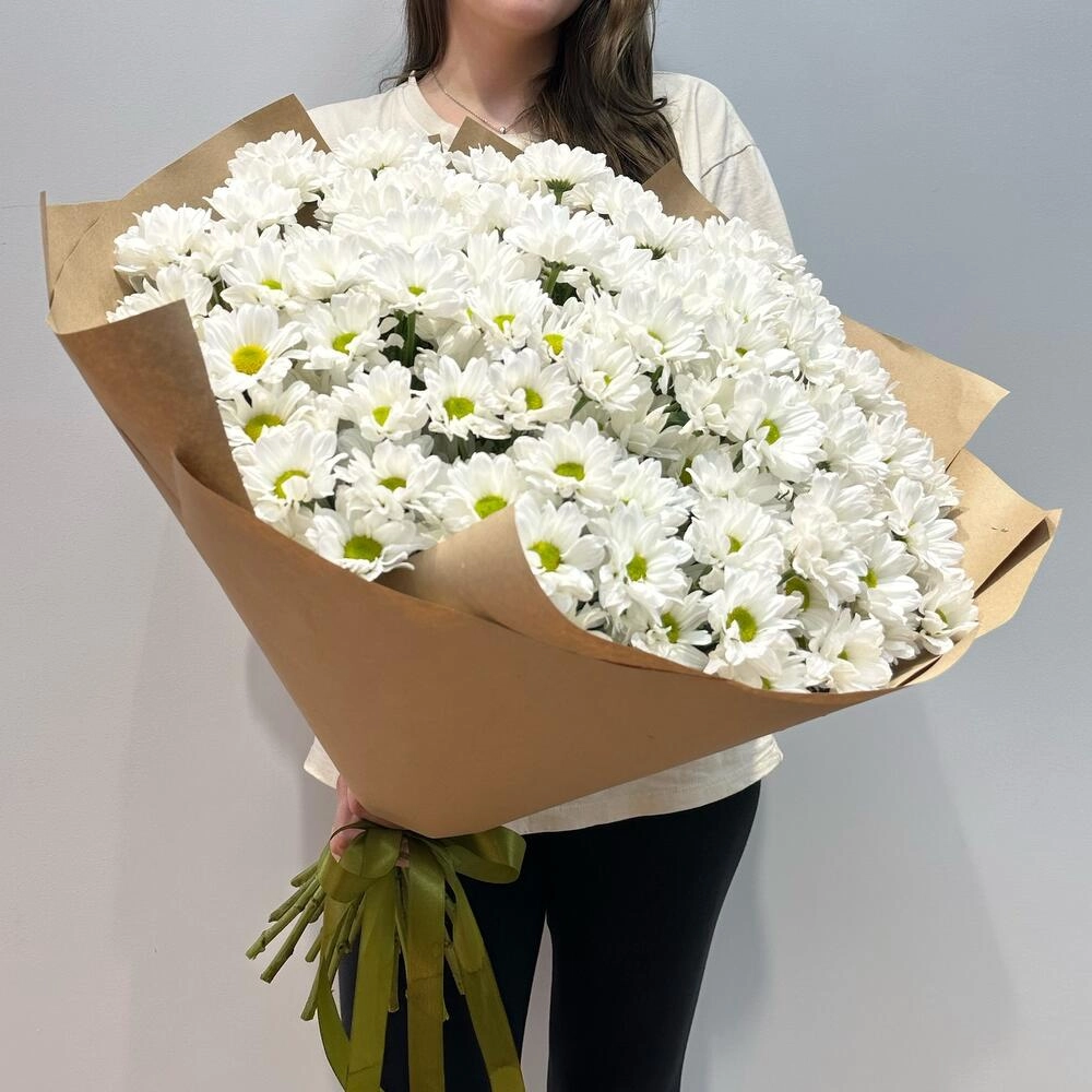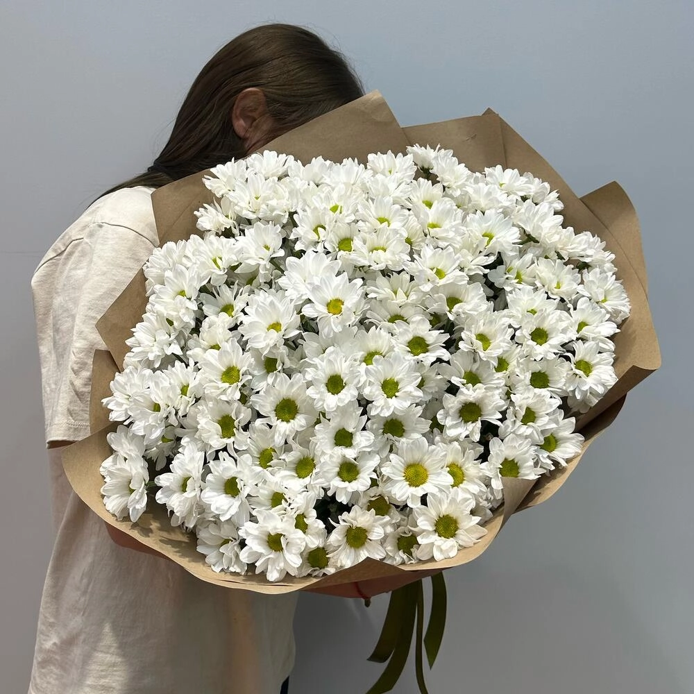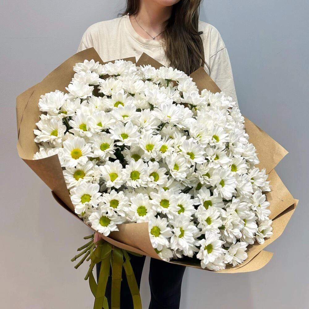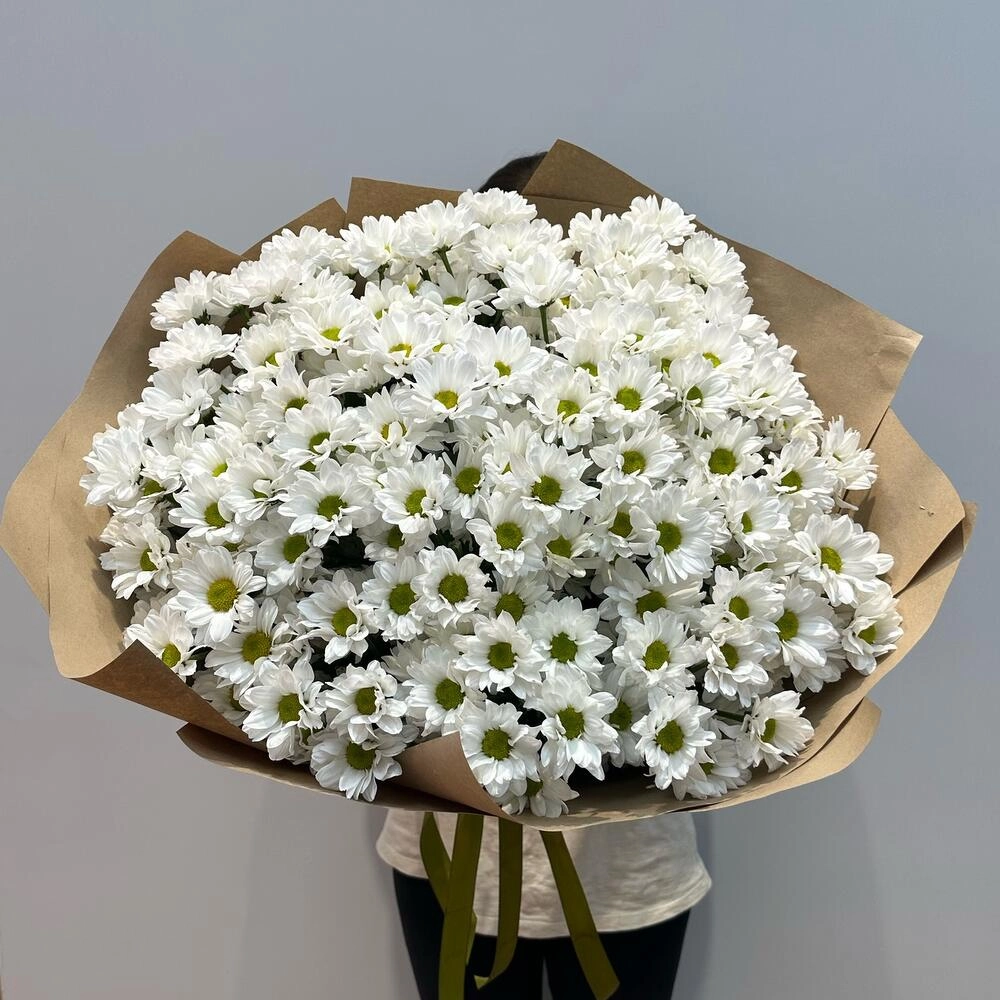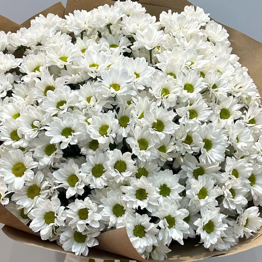 Букет «21 ромашка» – нежные белые кустовые хризантемы в натуральном стиле