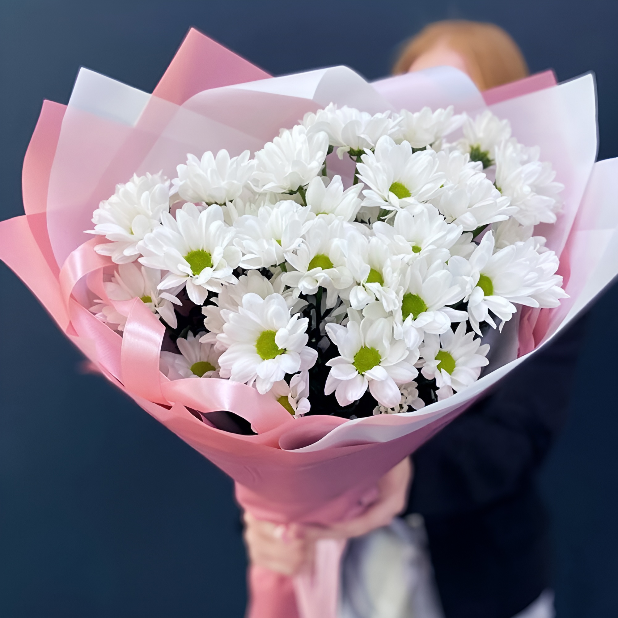 Букет «Ромашковое поле» – свежесть белых хризантем